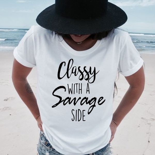2019 Classy With A Savage Side T Shirt Women Funny Letters Printed