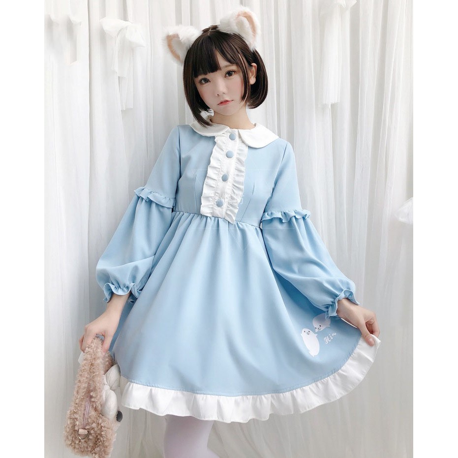 Women Classic Lolita Dress Sweet Cute Ruffle Dress Anime Cosplay