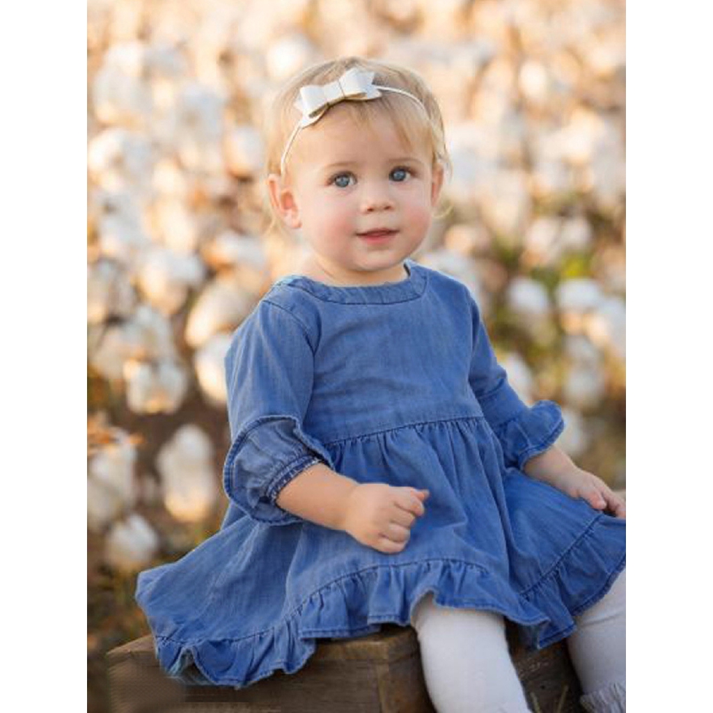 Raya Toddler Infant Baby Girls Ruffles Denim Princess Dress