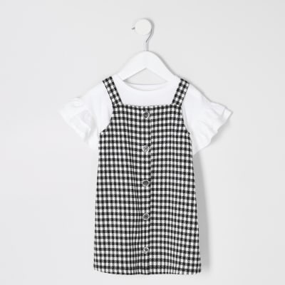 Mini Girls Gingham Pinafore Dress Outfit River Island