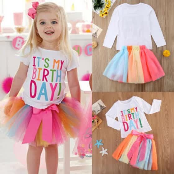 Shop Baby Girls Kid Toddler T Shirt Rainbow Tutu Skirt Dress
