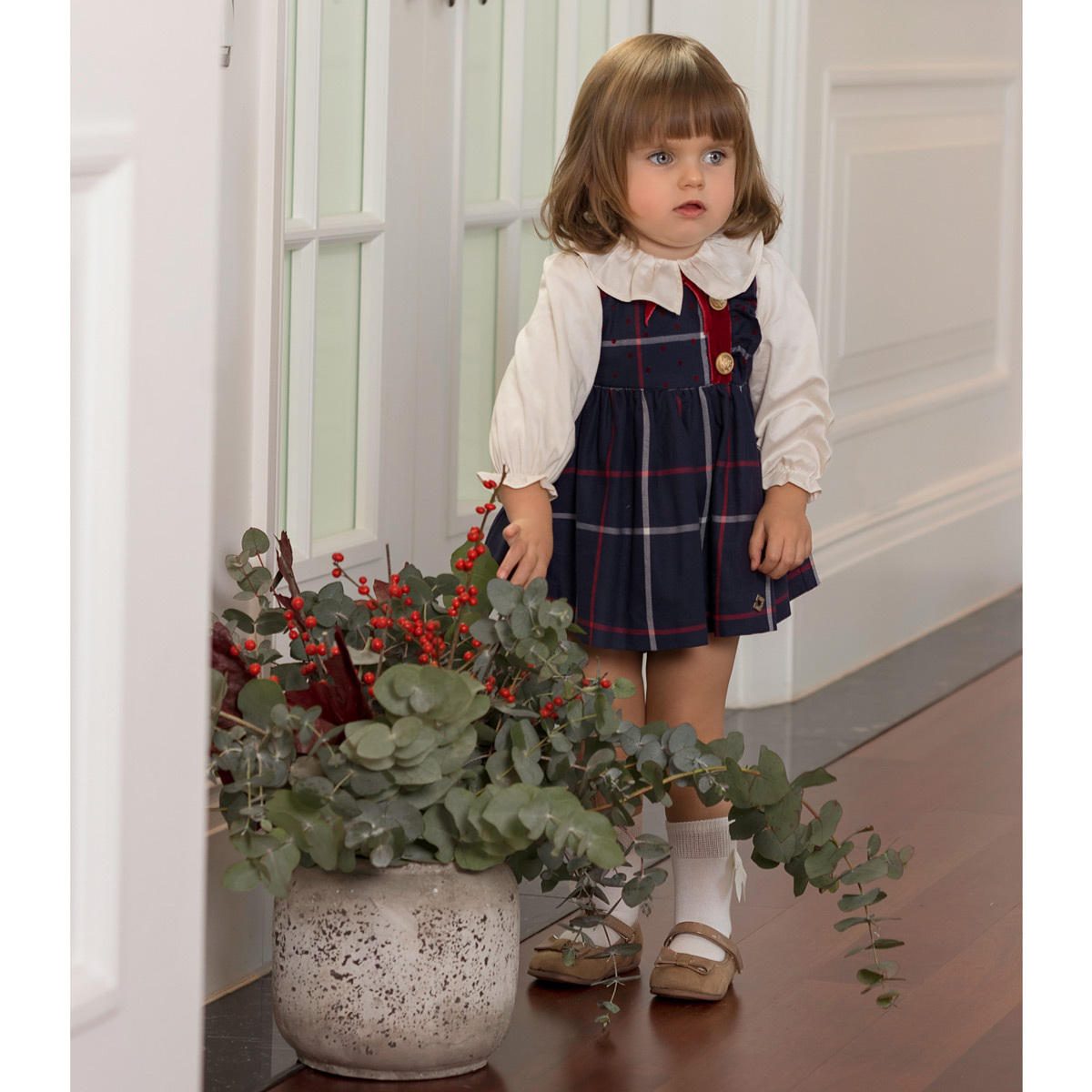 Dolce Petit 2019 Autumn Winter Baby Girls Ivory Blouse Navy