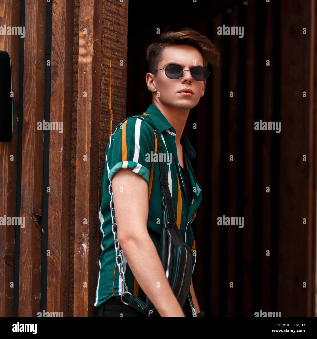Stylish Handsome Young Man With Trendy Sunglasses In Fashion Beach