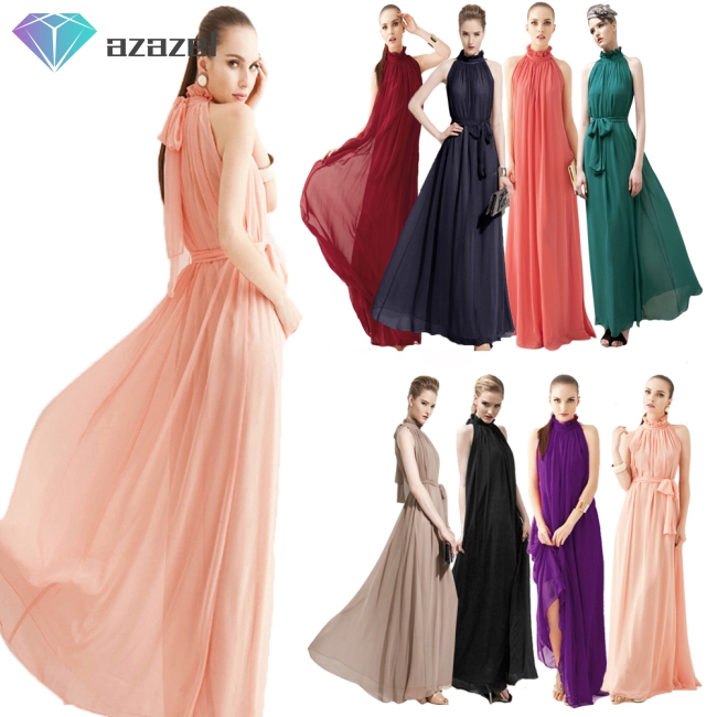 Women Halter Print Chiffon Bohemian Style Maxi Dress Intl
