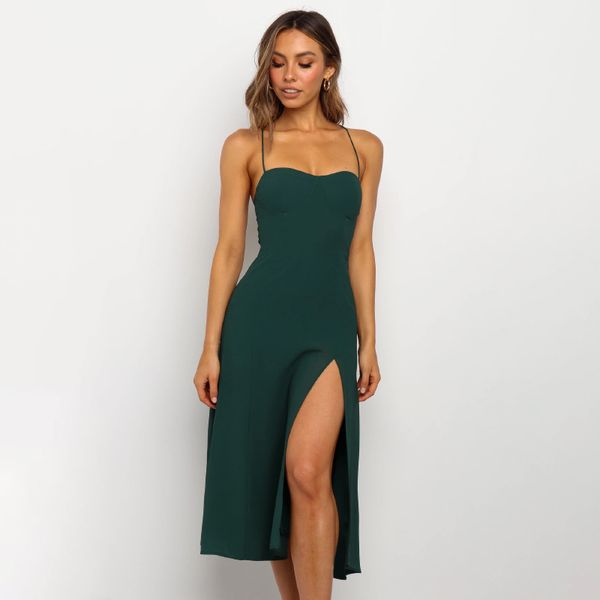 Summer Green Dresses Woman Party Night Halter Sling Club Split