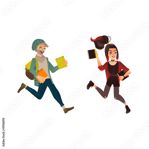 Vector Cartoon Young Happy Teen Student Girl Man With Backpack