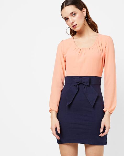 Buy Peach Navy Blue Dresses For Women By Besiva Online Ajio Com