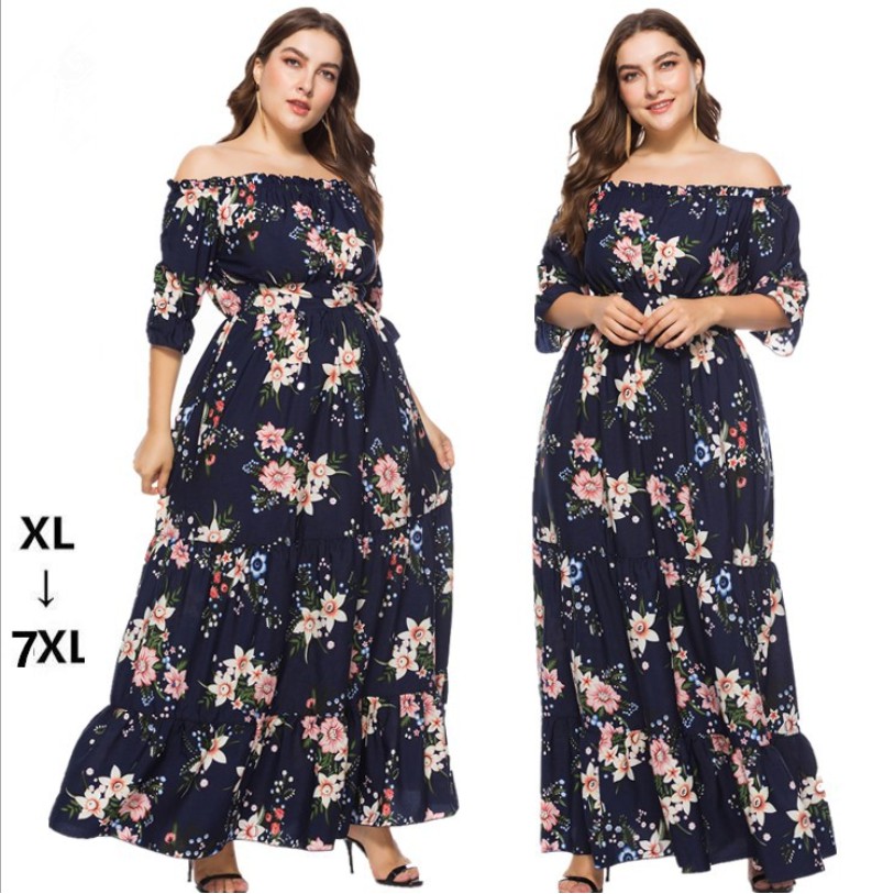 2020 Women Plus Size Off Shoulder Floral Maxi Bohemian Dress