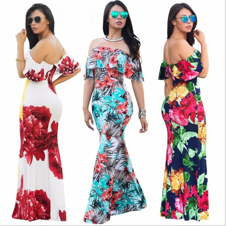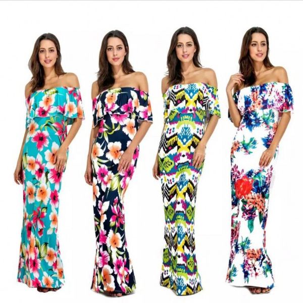 2020 Summer Boho Women Long Dress Sexy Slash Neck Off Shoulder
