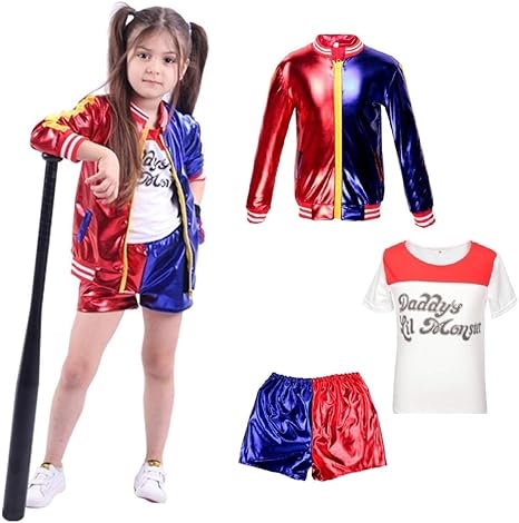 Kids Girls Suicide Squad Harley Quinn Costumes Dress Up Coat
