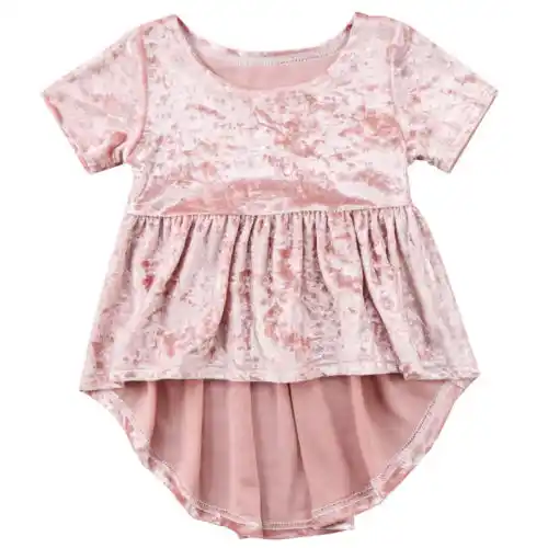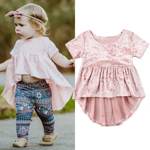 2018 New Pink Velvet Dress Kids Girl Irregular Dress Outfit Baby