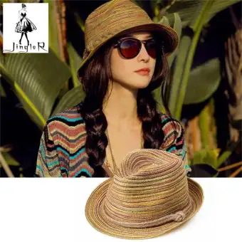 Jingler Women Straw Hat Bohemian Soft Breathable Simple Pigtail