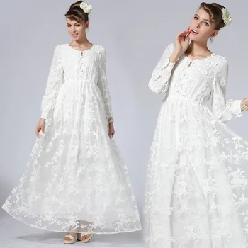 Simple Embroidered Dress Muslim Robes Loose Long Dress O Neck