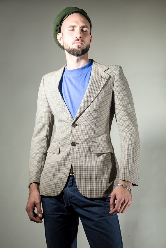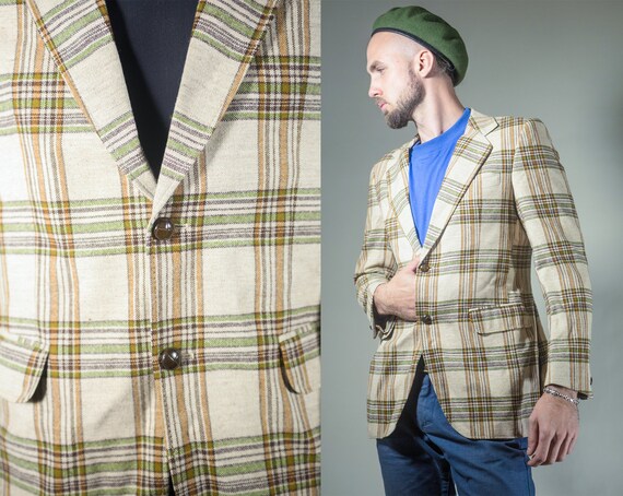 Vintage Wool Checked Jacket Old School Hipster Beige Woven Etsy