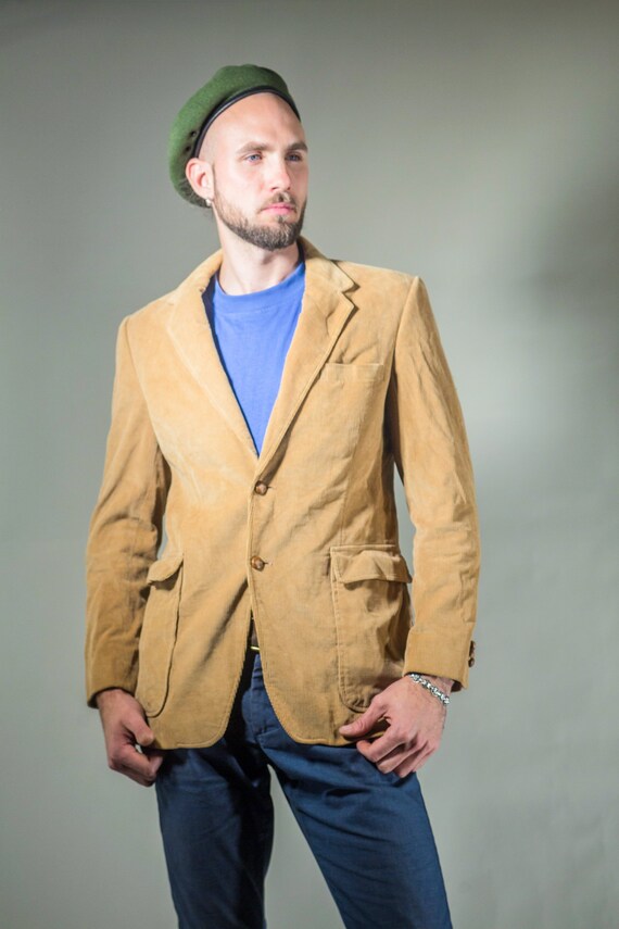 Vintage Wool Velvet Jacket Old School Hipster Beige Yellow Etsy