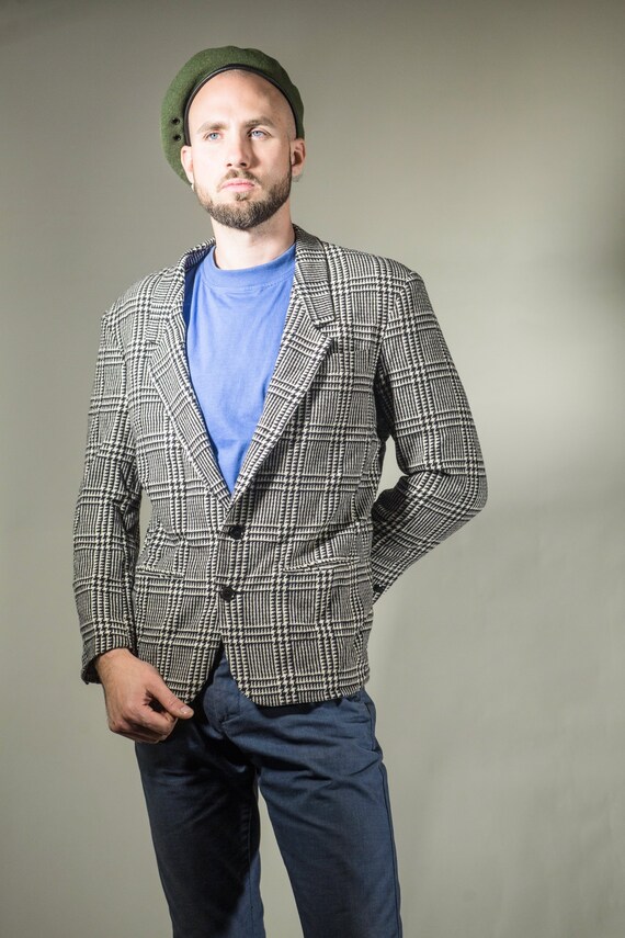 Vintage Wool Checked Jacket Old School Hipster Black And Etsy