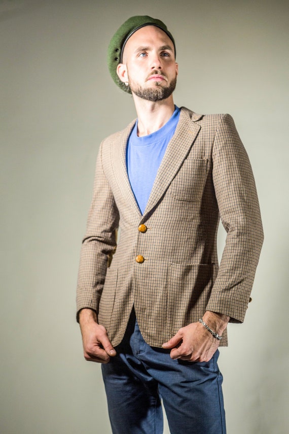 Vintage Wool Checked Jacket Old School Hipster Brown Woven Etsy
