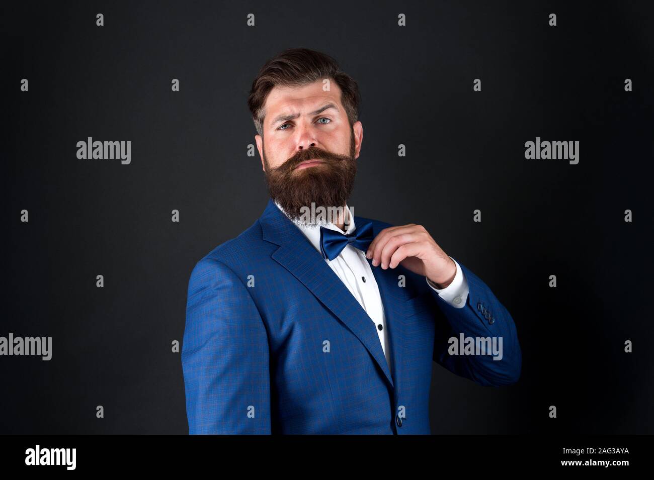 Man Adjust Suit With Bow Tie Formal Suit Jacket Close Up Male