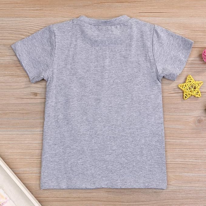 Younger Star 1pc Children Baby Boy Gray Letter Print Short Sleeve