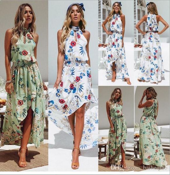 Trendy Beach Dresses Printed Long Irregular Skirts Bohemian Style