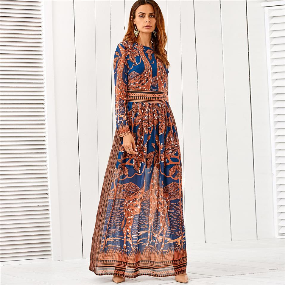 2018 Print Summer Dress For Women Bohemian Style Women Maxi Prom