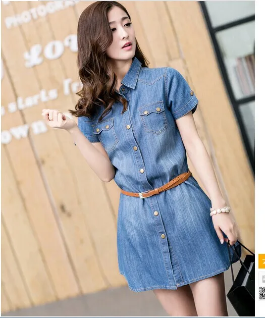 Summer Dress New 2017 Denim Dresses Elegant O Neck Short Sleeve