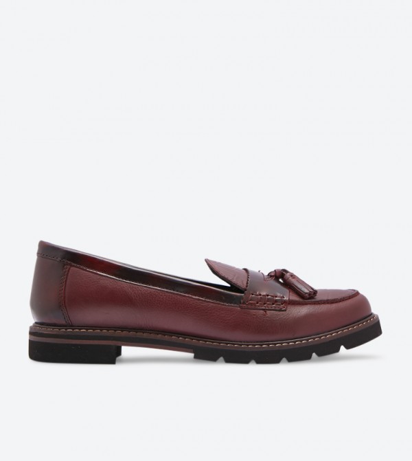 Gennia Tassel Details Block Heel Loafers Burgundy