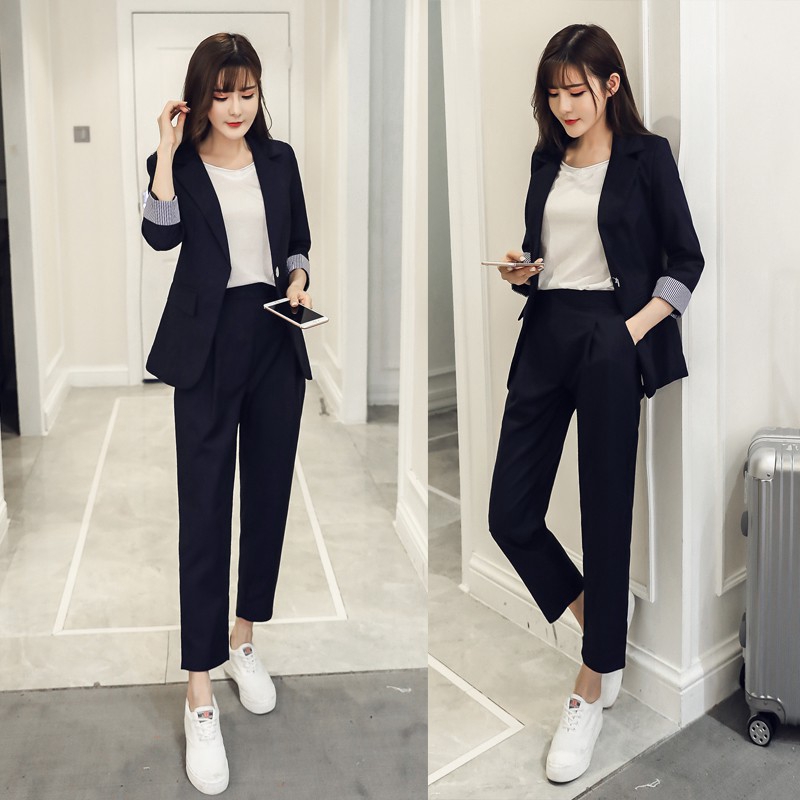 New Korean Fashion Elegant Women Blazers Suit Office Casual Set