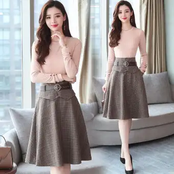 Fashion And Elegant Korean Style Woolen Dress 2pcs Set Yw40638