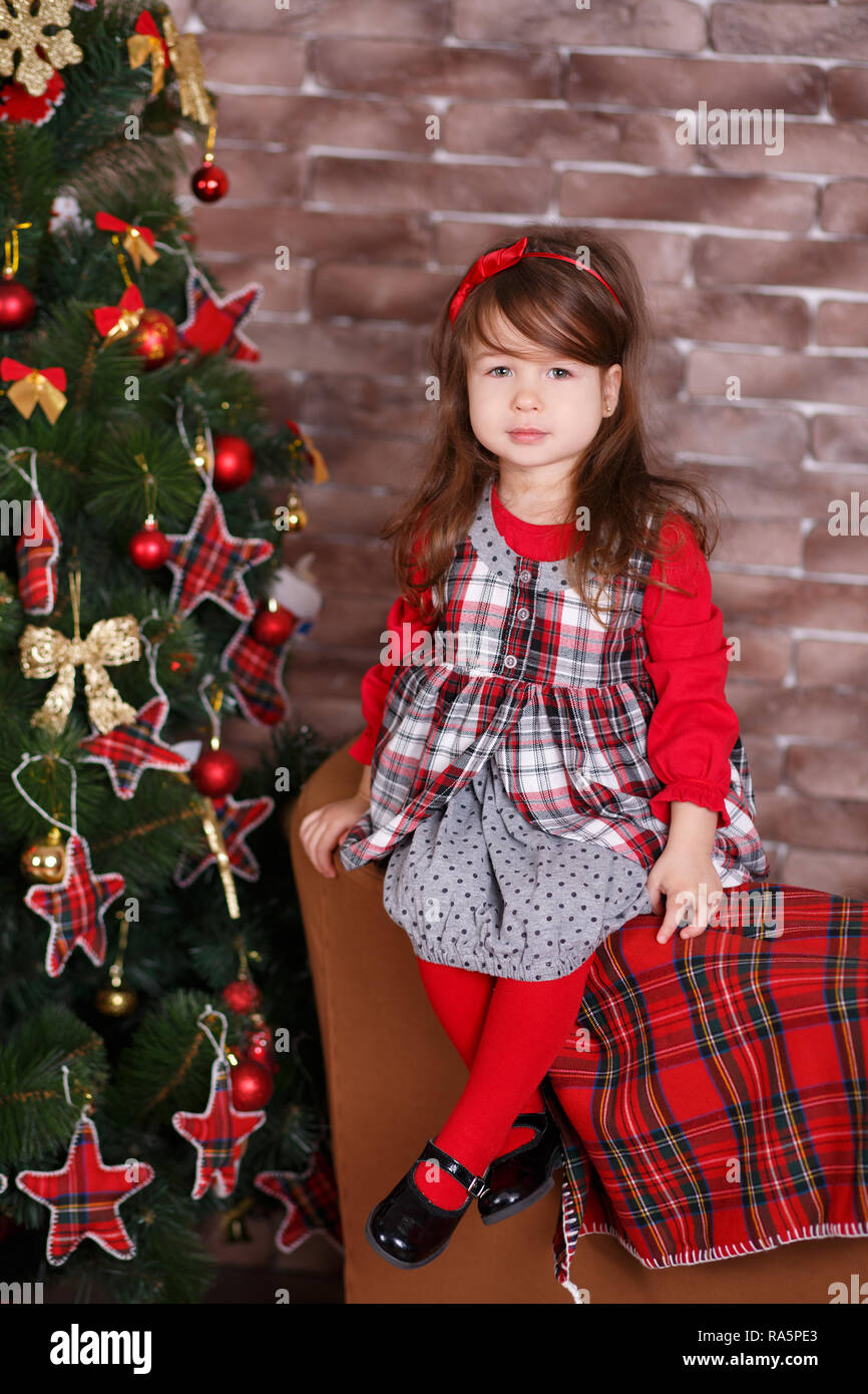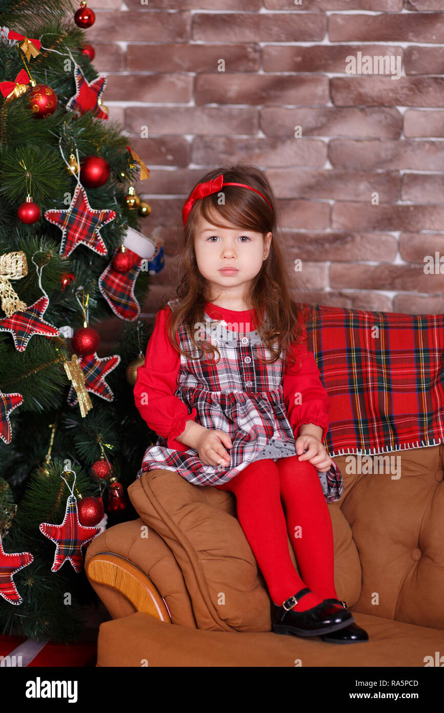 Young Brunette Dolly Lady Girl Stylish Dressed In Red Dress