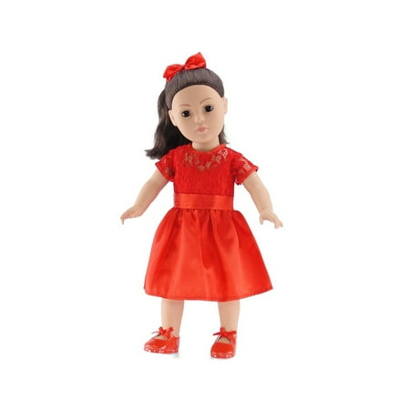 18 Inch Doll Clothes Red Lace Holiday Dress Outfit With Shoes