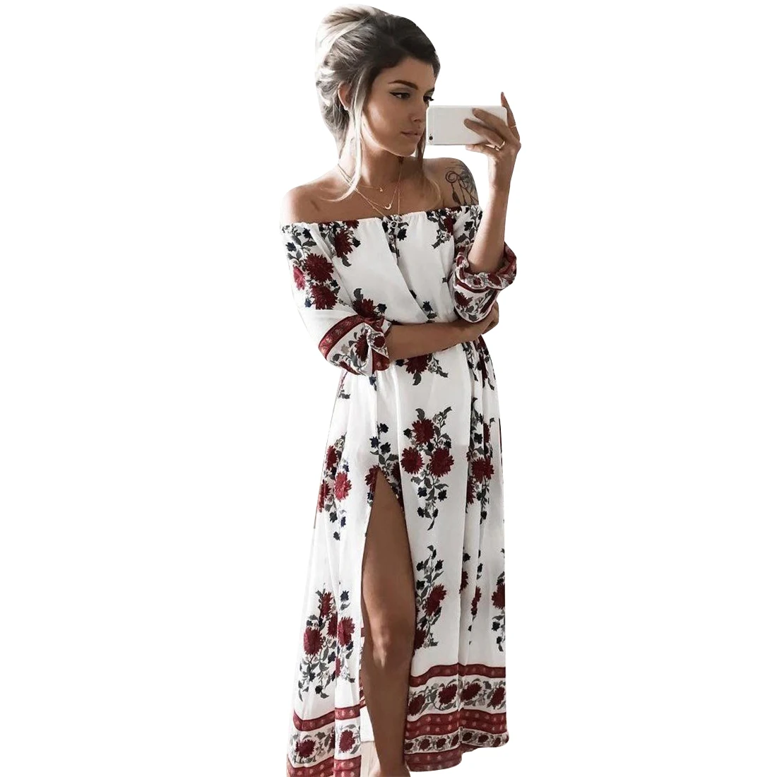 Casual Vintage 2017 Summer Boho Beach Dresses Sexy Off Shoulder
