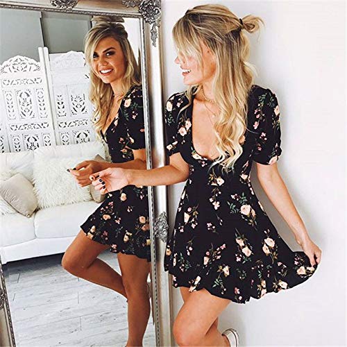 Buy Wyfeay Women Mini Boho Floral Dress Summer Beach Short Sleeve