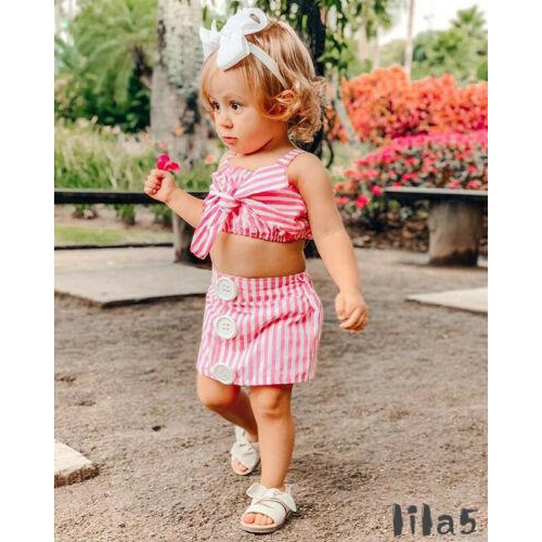 ღ Kid Toddler Baby Girl Stripes Crop Top Vest Skirt Dress Outfit