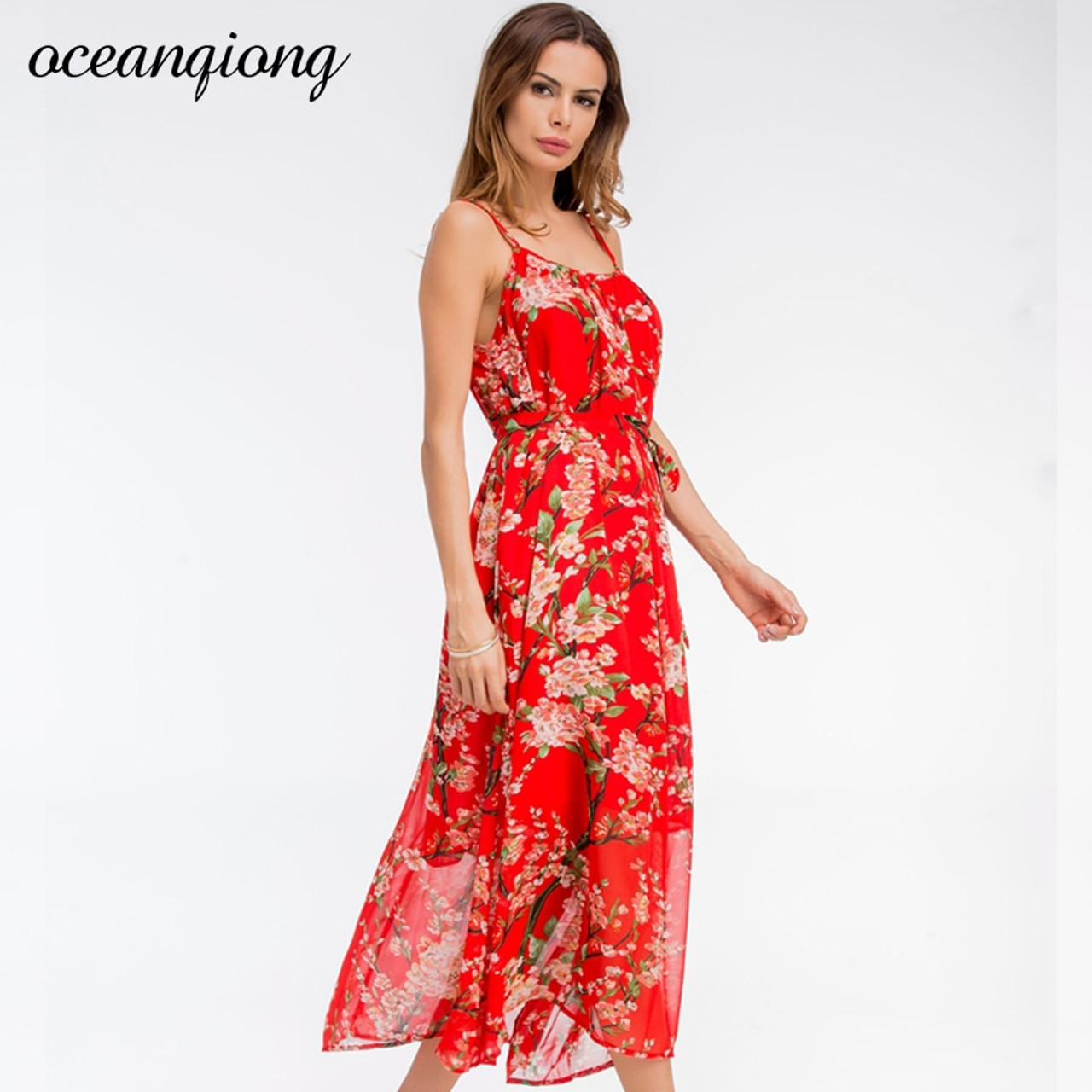 2018 Vestidos Boho Dress Vintage Floral Print Sashes Beach