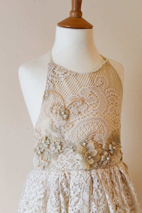 Nataya Vintage Bohemian Style Dress S Lace Beige Tan Lace Gatsby