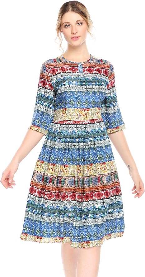 Instom Women S Printed Vintage Bohemian Tunic Persia Dress At