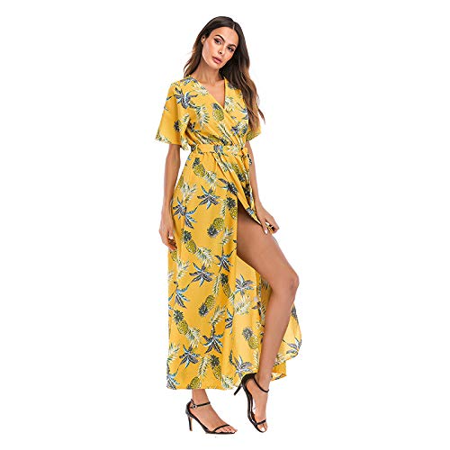 Bestwendding Summer Floral Print Maxi Dress Women Button Up Split