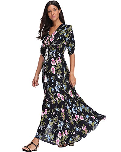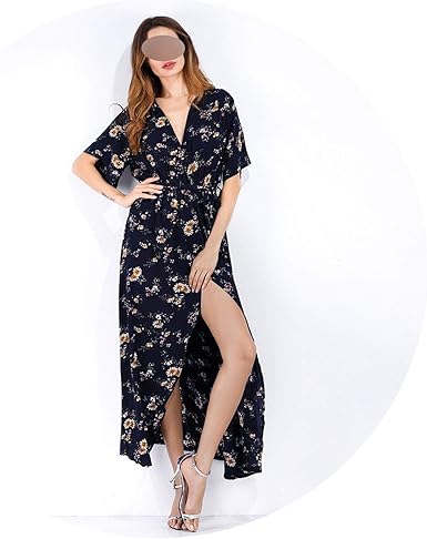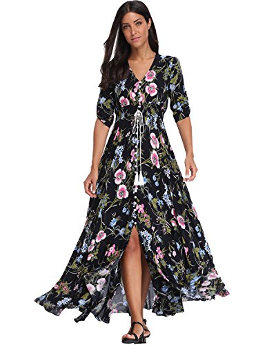 Amazon Com Summer Floral Maxi Dress Women Button Up Split Flowy