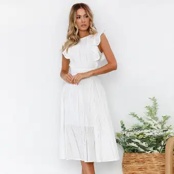 Dress Women Ruffle Elegant Sundress Sexy Lace Boho Beach Party