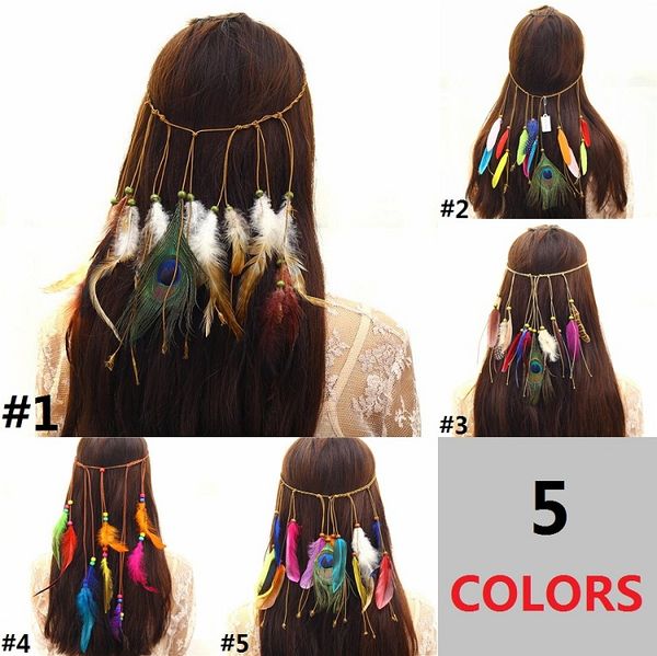 Women Girls Bohemian Style Hair Band Accessories Peacock Feather