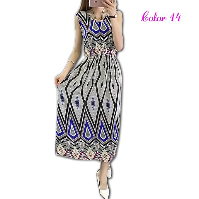 2019 Summer Dress Women Print Bohemian Dress Sleeveless Boho Style