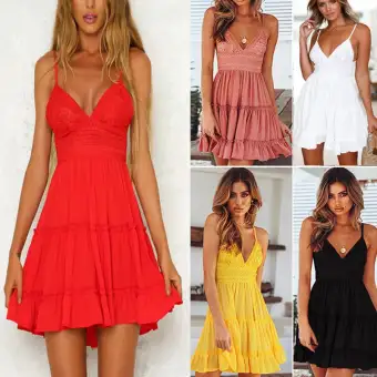 2019 Summer Dress Women S V Neck Backless Lace Stitching Dress