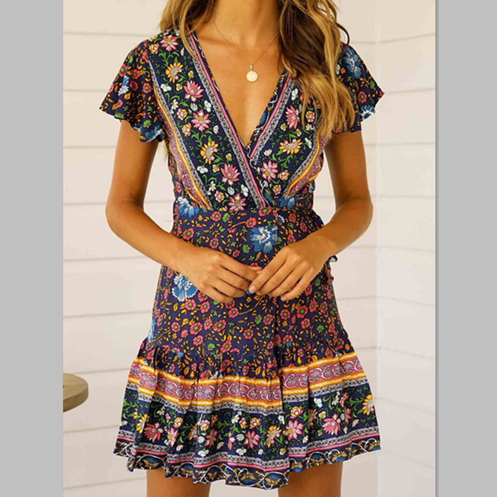 Summer Woman Dress 2019 Fasion Sexy Bohemian Style Floral Boho