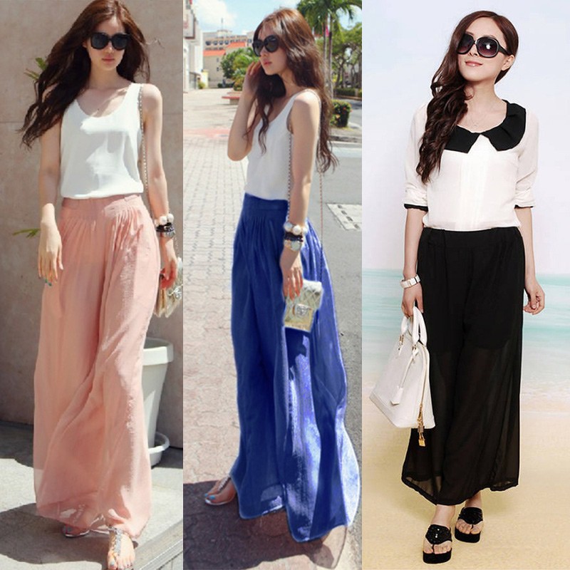 Women Pants Fashion Wide Leg Pants Bohemian Style Chiffon Women