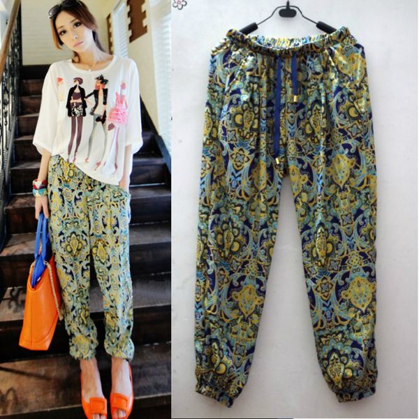 New 2019 Fashion Bohemian Style Long Pants Summer Print Chiffon Ha