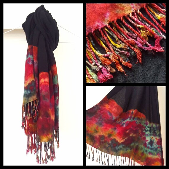 Black Scarf Multicolour Tie Dye Pashmina Hijab Hippie Unique Etsy