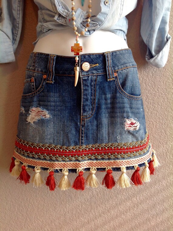 Maribou London Skirt Upcycled Levi S Jeans Hippy Boho Chic