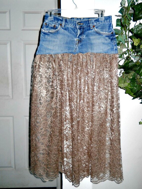 Vintage Lace Jean Skirt Sheer Delicate Taupe Shimmery Boho Etsy