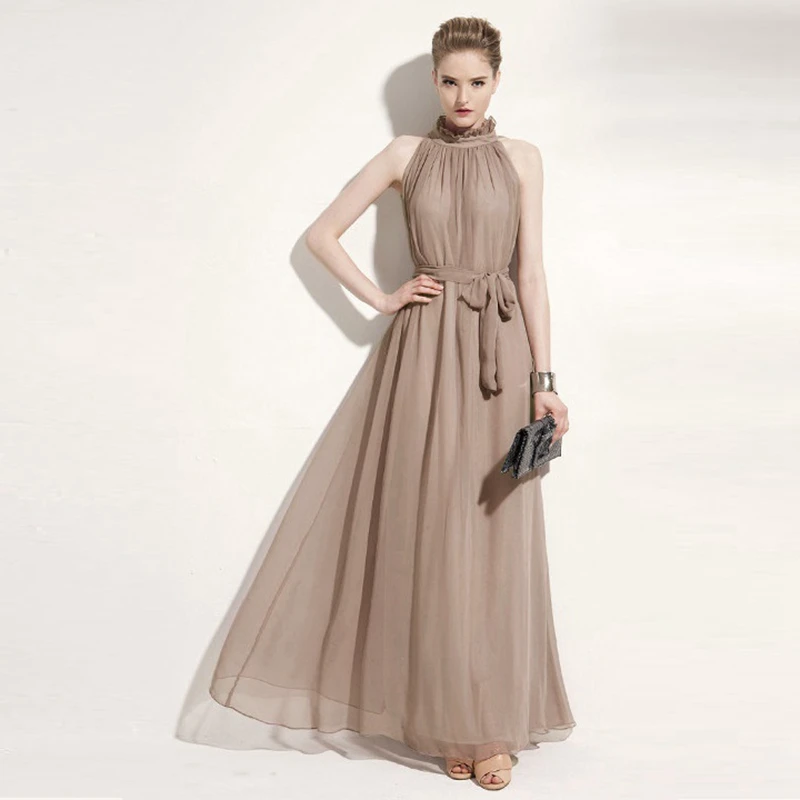 Bohemian Style Maxi Dresses Elegant Irregular Women Chiffon Linen